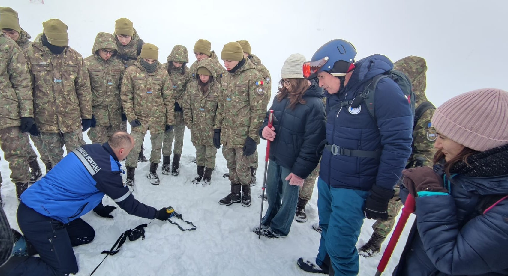 Duminică, activitatea a continuat cu partea practică, la cota 2000, unde cunoștințele teoretice au fost aplicate în teren. Elevii au exersat tehnici specifice deplasării în condiții de iarnă, recunoașterea zonelor cu risc de avalanșă și aplicarea măsurilor de siguranță, alături de colonel Lucian Miu-Grigorescu – Centrul de Perfecționare a Pregătirii Cadrelor Jandarmi Montani Sinaia – Jandarmeria Română și Marius Scheaua.