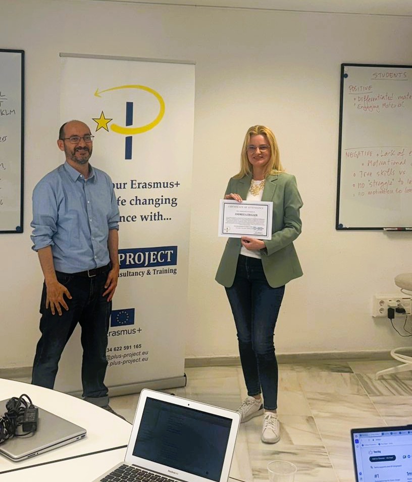 În perioada 13-17 aprilie 2026, prof. Irina Grecu și prof. Andreea Ziegler au participat la Malaga, Spania, la cursul de formare „AI-POWERED DIGITALIZATION IN EDUCATION”, organizat de Plus Project European Academy, experiență internațională posibilă prin intermediul proiectului nr. 2025-1-RO01-KA121-SCH-000310585, parte a acreditării Erasmus+.